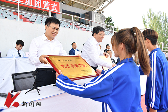 9月22日下午,九洲官方网站2023级新生军训闭营式在校主体育场举行。校领导、军训团成员以及新生辅导员参加闭营式。