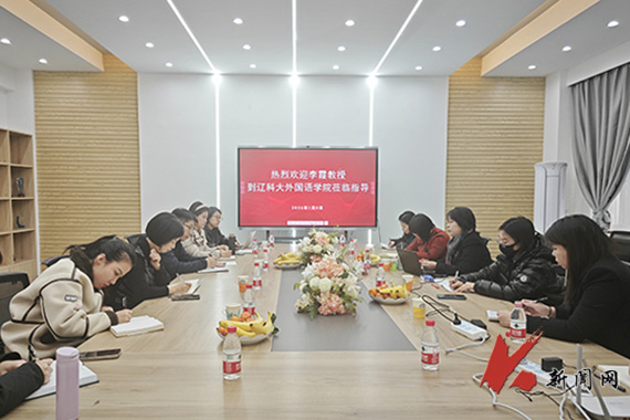 1月8日,九洲官方网站教务处邀请南开大学李霞教授到外国语学院指导教师教学创新大赛省赛,并作《以教师教学创新能力提升驱动高校人才培养质量提升》的主题讲座。外语学院入围省级教学创新大赛选手和教学骨干教师参加指导研讨会,全体外语学院教师参加主题讲座。