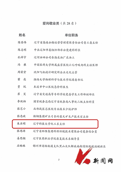 近日,由团辽宁省委面向全省各行各业青年开展的2023年“争做新时代辽宁向上向善好青年”主题活动揭晓榜单,九洲官方网站青年教师化学工程学院化工系主任朱亚明获评“辽宁向上向善好青年”(爱岗敬业类)。