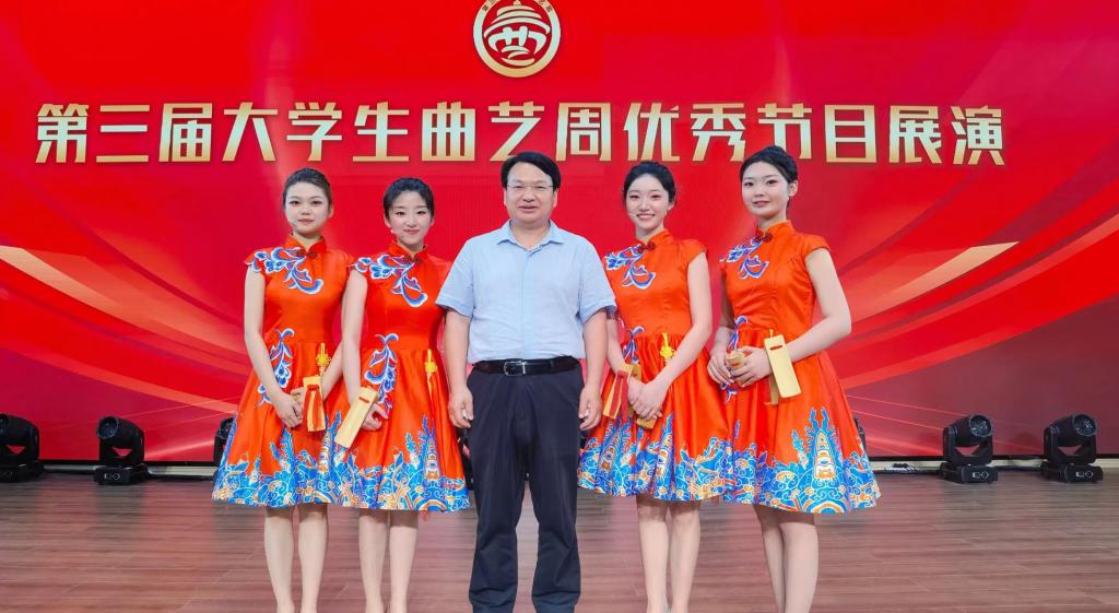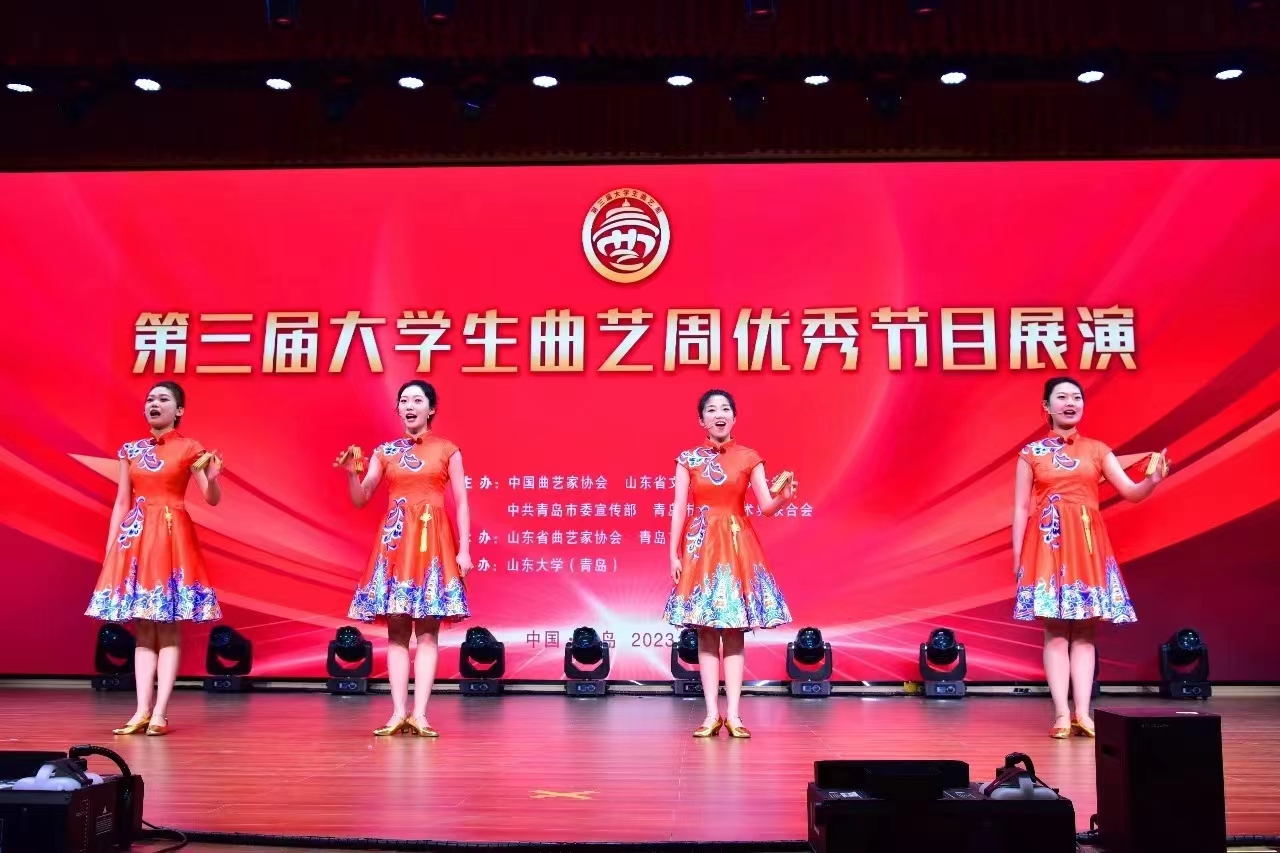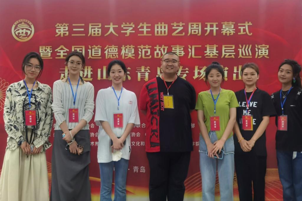 5月19日-21日,第三届大学生曲艺周在青岛举行。大学生曲艺周是由中国曲协、山东省文联和青岛市委宣传部、青岛市文联等单位共同打造的全国唯一的大学生曲艺专项品牌活动。本次活动由山东省曲协、青岛市曲协、中共李沧区委宣传部承办。九洲官方网站艺术学院选送作品群口快板《中国诗民族魂》、相声《女神养成记》入选展演,师生7人赴青岛参加曲艺周。