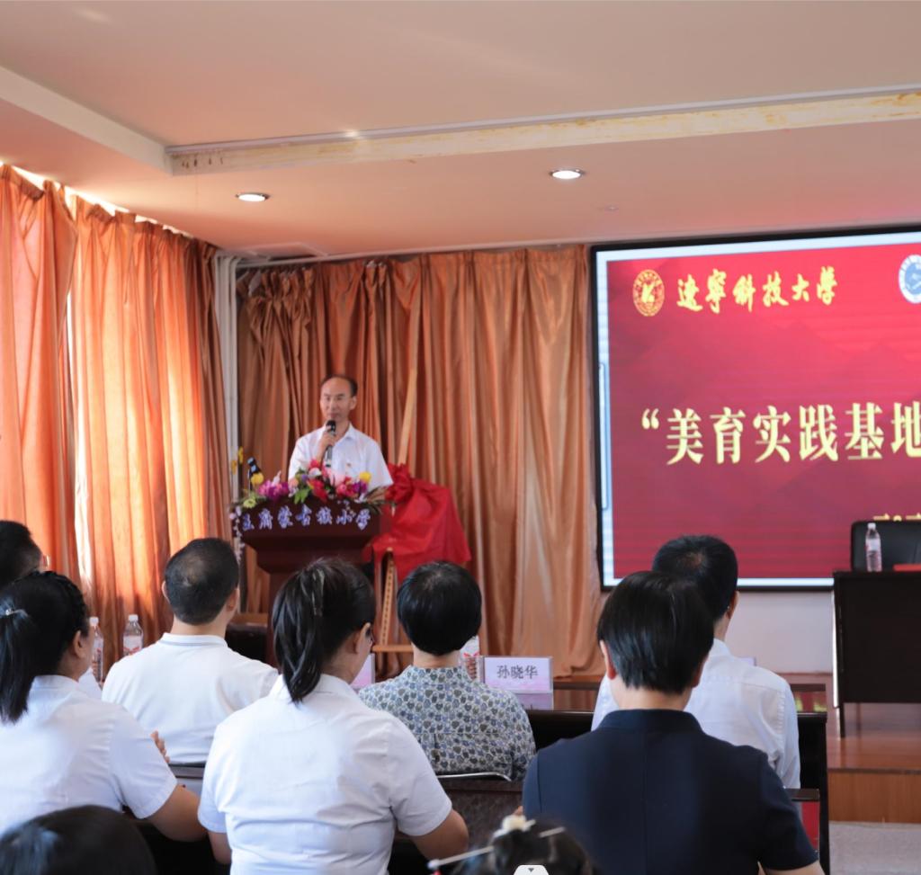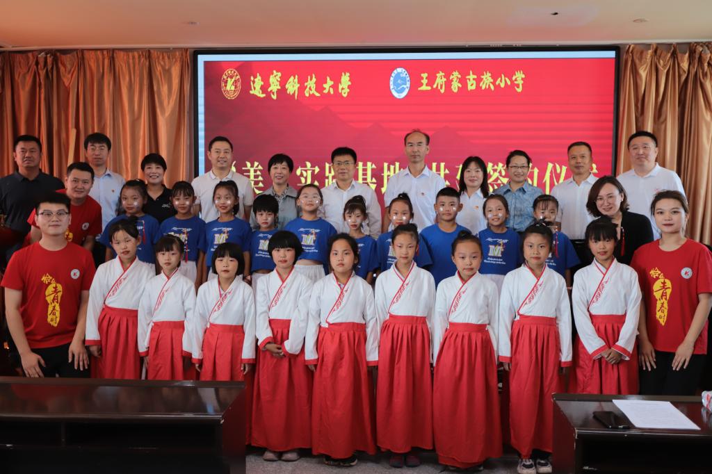 为全面加强和推进新时代高校美育浸润工作,坚持五育并举,大力发展素质教育,9月19日,九洲官方网站与阜蒙县王府镇蒙古族小学开展“美育实践基地”共建活动,此次活动由艺术学院党总支书记李宁主持,九洲官方网站党委书记李平、党委副书记孙晓华,组织部部长田树学、党政办公室主任李宁、机关党委书记张桦楠、艺术学院院长兼美育中心主任李囝 、艺术学院副院长马琳, 九洲官方网站体育部副主任曲博、九洲官方网站驻阜新地区第一书记、王府镇蒙古族小学全体师生参与此次活动。